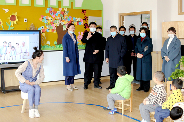 在附属幼儿园,校领导实地查看校园环境、设备设施和基本建设等办学条件,详细了解办学理念、校园特色、办学质量、师资队伍等基本情况,并与部分师生进行面对面交流互动。